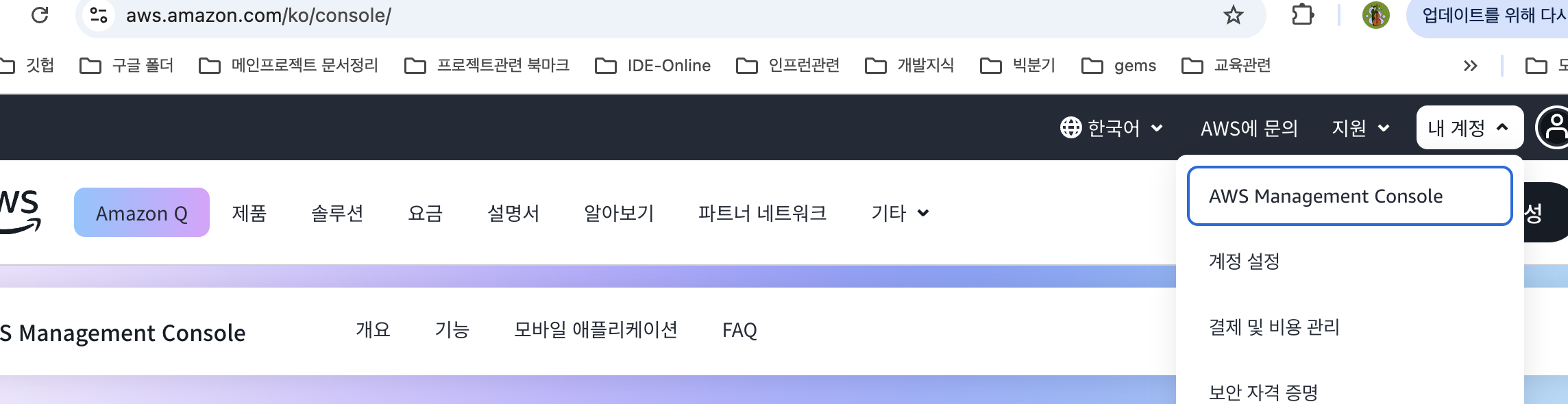 - User - 보안 자격증명 - accesskey생성 (access Key와 비밀 key)