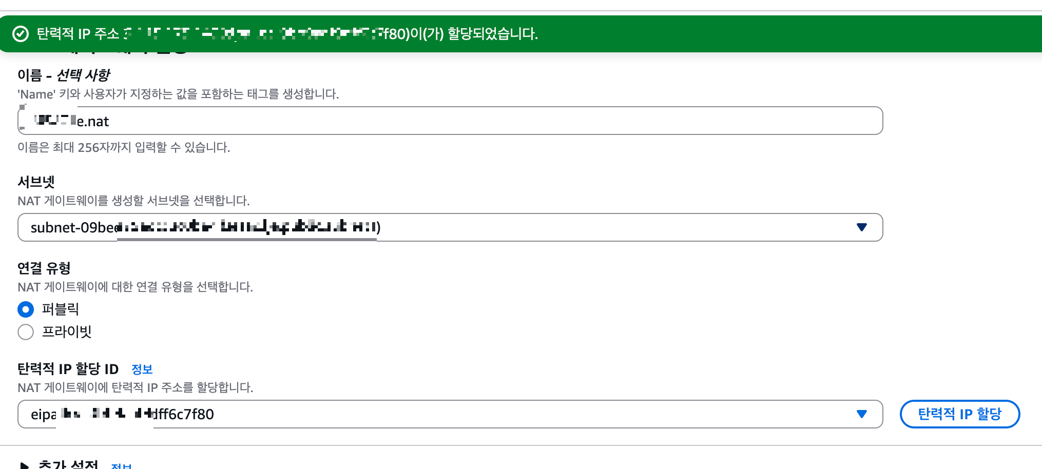 ( public subnet에 연결, 외부 접속을 위한 Elastic IP할당 )