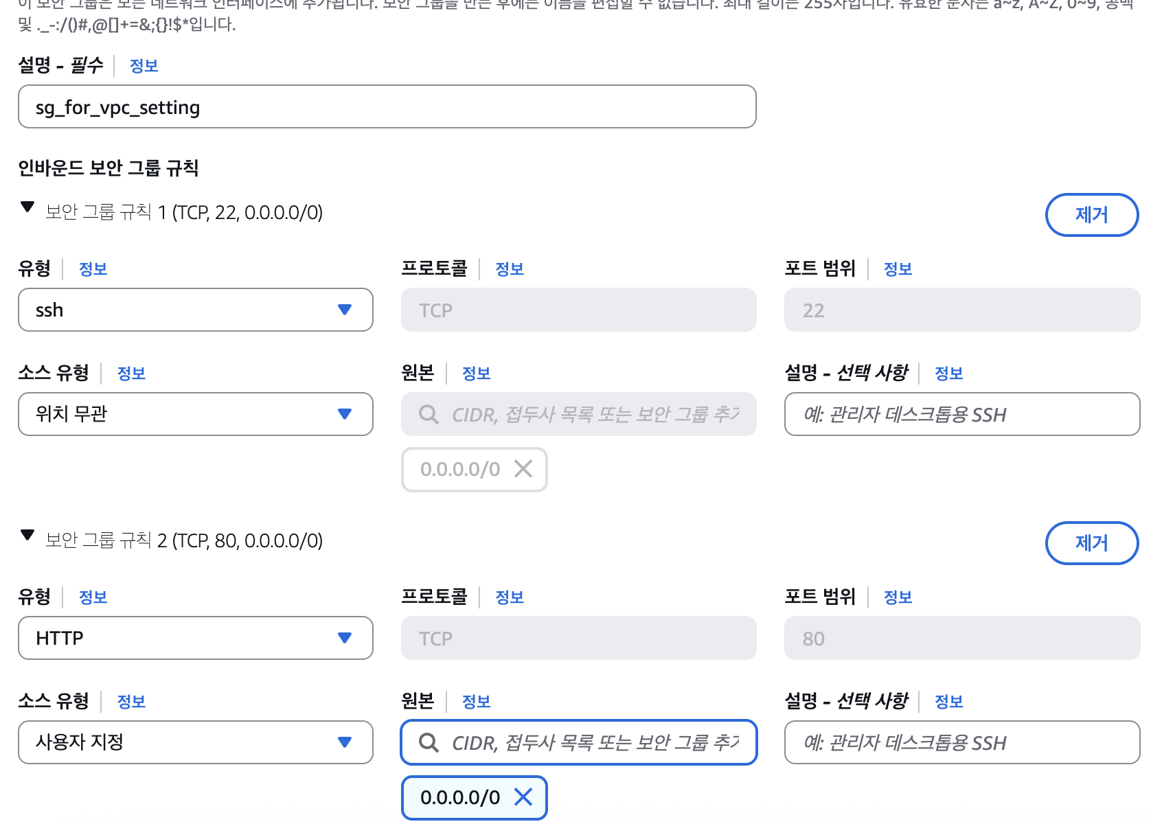 ① 보안 그룹 설정 ( EICE를 위한 별도의 보안그룹 생성 )