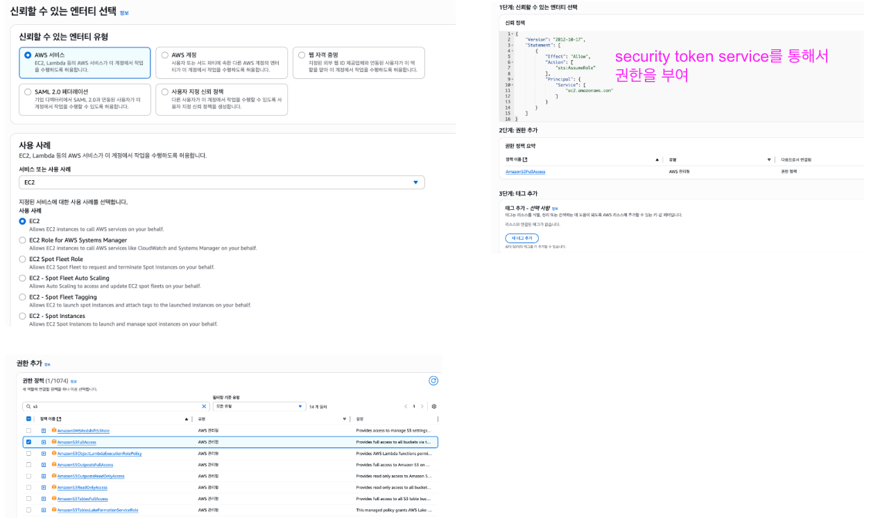 ① IAM에서 역할생성 (EC2에 S3의 접근가능한 역할 생성)