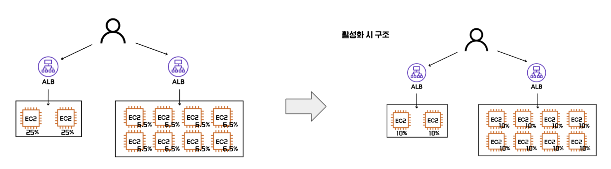 - 트래픽 분배 ( ASG와 결합, 트래픽에 대응 )