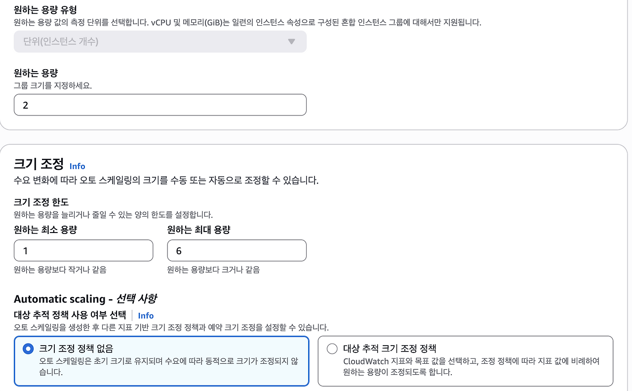 ④ ASG설정에서 인스턴스 용량등 옵션 변경