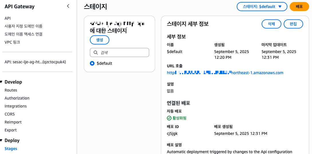 - API Gateway(HTTP Api) 생성 ( api gateway로 요청시 전달할 경로구성 )